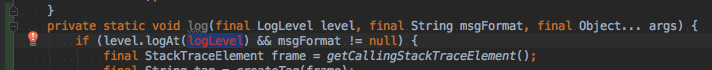 private static void log(final LogLevel level, final LogLevel logLevel, final String msgFormat, final Object... args) { //...