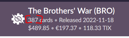 As an example, the source data has the latest "Brother's War" set with 387 cards.
